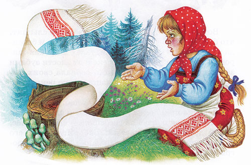 — Послала меня мачеха к своей сестре попросить иголку и нитку — хочет мне рубашку сшить.