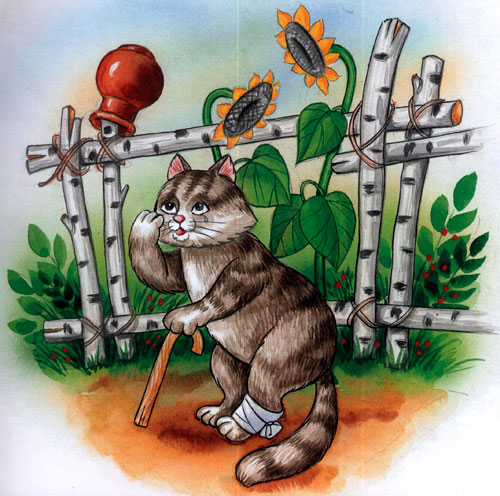 — Кот-коток, серенький лобок, о чем плачешь, та трех ногах скачешь?