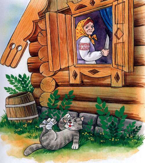 — Ах ты, серый кот, бестолковый лоб! За что ты нас-то загубил? Вот мы тебя забодаем!